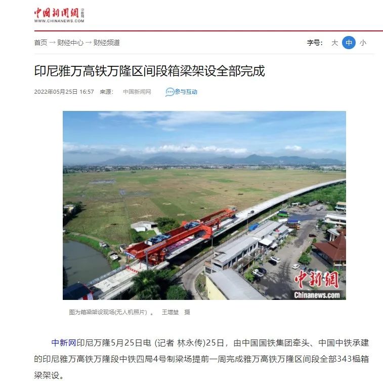 △中国新闻网:印尼雅万高铁万隆区间段箱梁架设全部完成