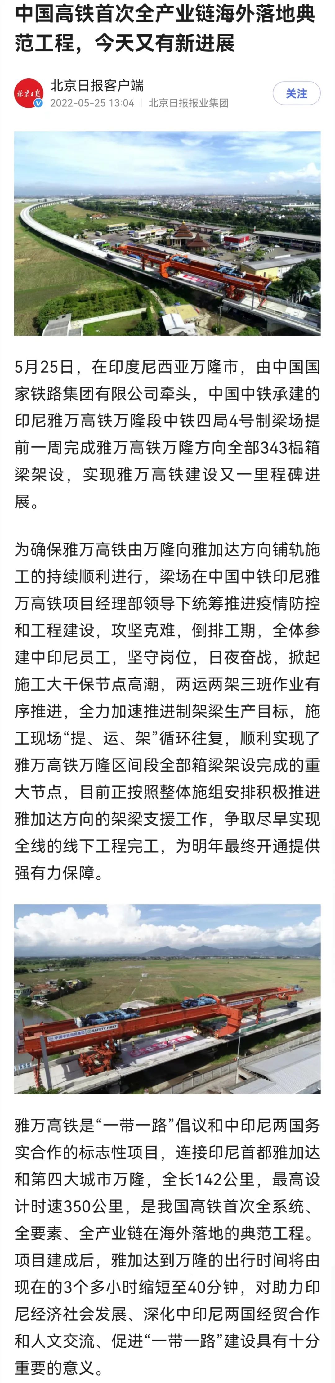 △《北京日报》客户端:中国高铁首次全产业链海外落地典范工程,今天又有新进展点击链接,了解更多雅万高铁建设情况
