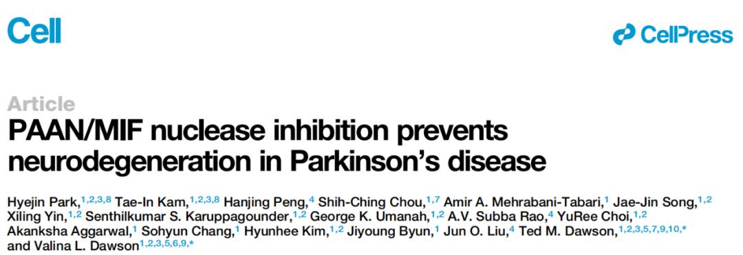 2022年5与10日,美国约翰斯·霍普金斯大学医学院的研究人员在 Cell 上发表题为:PAAN/MIF nuclease inhibition prevents neurodegeneration in Parkinson’s disease 的研究论文。