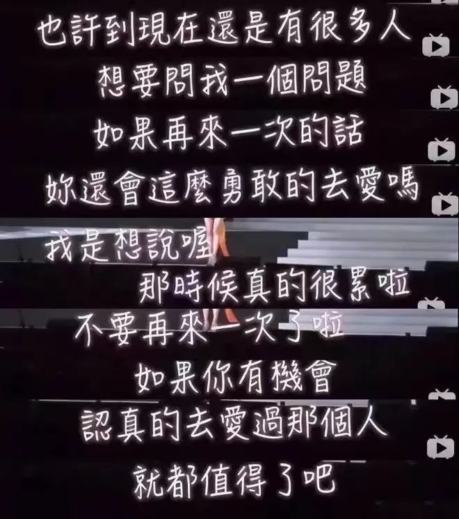 “那时候真的很累啦,不要再来一次了啦。可是,如果你有机会认真地去爱过那个人,就都值得了吧。”