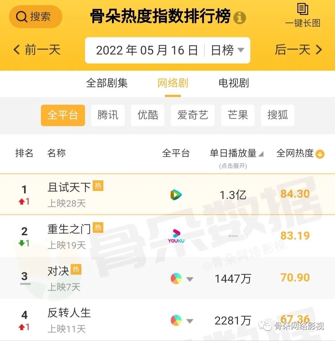 但就像剧中跆拳道社的学生们通过努力学习最终完成了“提高30分”的进步目标一样,《反转人生》也在一众腰部剧的竞争中成功以小博大突出重围,进入骨朵热度排行榜前四,排名仅次于《且试天下》等头部剧。