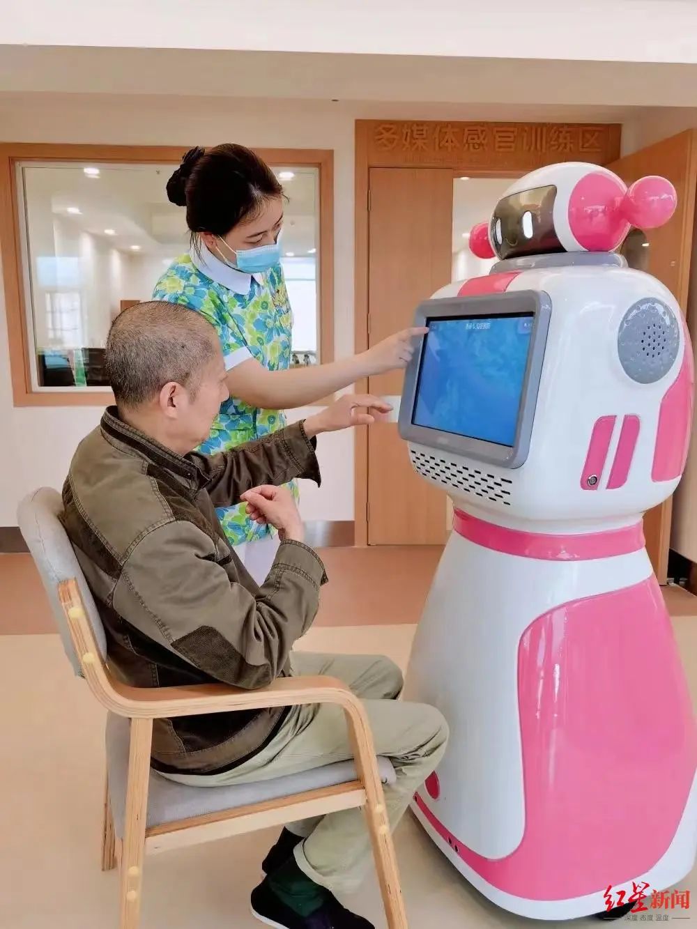 此外,新院区还加大了智慧信息化建设力度,配备有自助服务设备、认知障碍康复评估机器人、室内无感智能看护系统、全自动无障碍洗澡机、移动助浴洗澡机等智慧化适老设施,为辖区“失能和半失能老人,患有慢病需要长期医疗监护的病人、急性期治疗完成需要后期康复的病人”提供更加便捷、更加优质的医疗、康复、照护、护理服务。