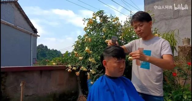 上门理发,理发师视角。图源:B站「守山人阿亮」