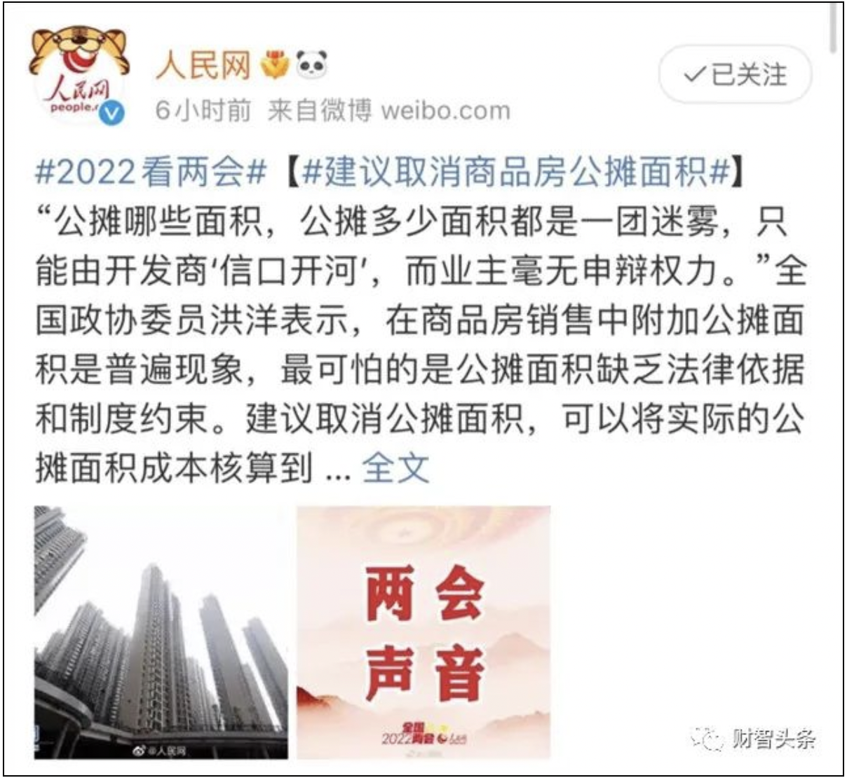 两会委员建议取消公摊面积