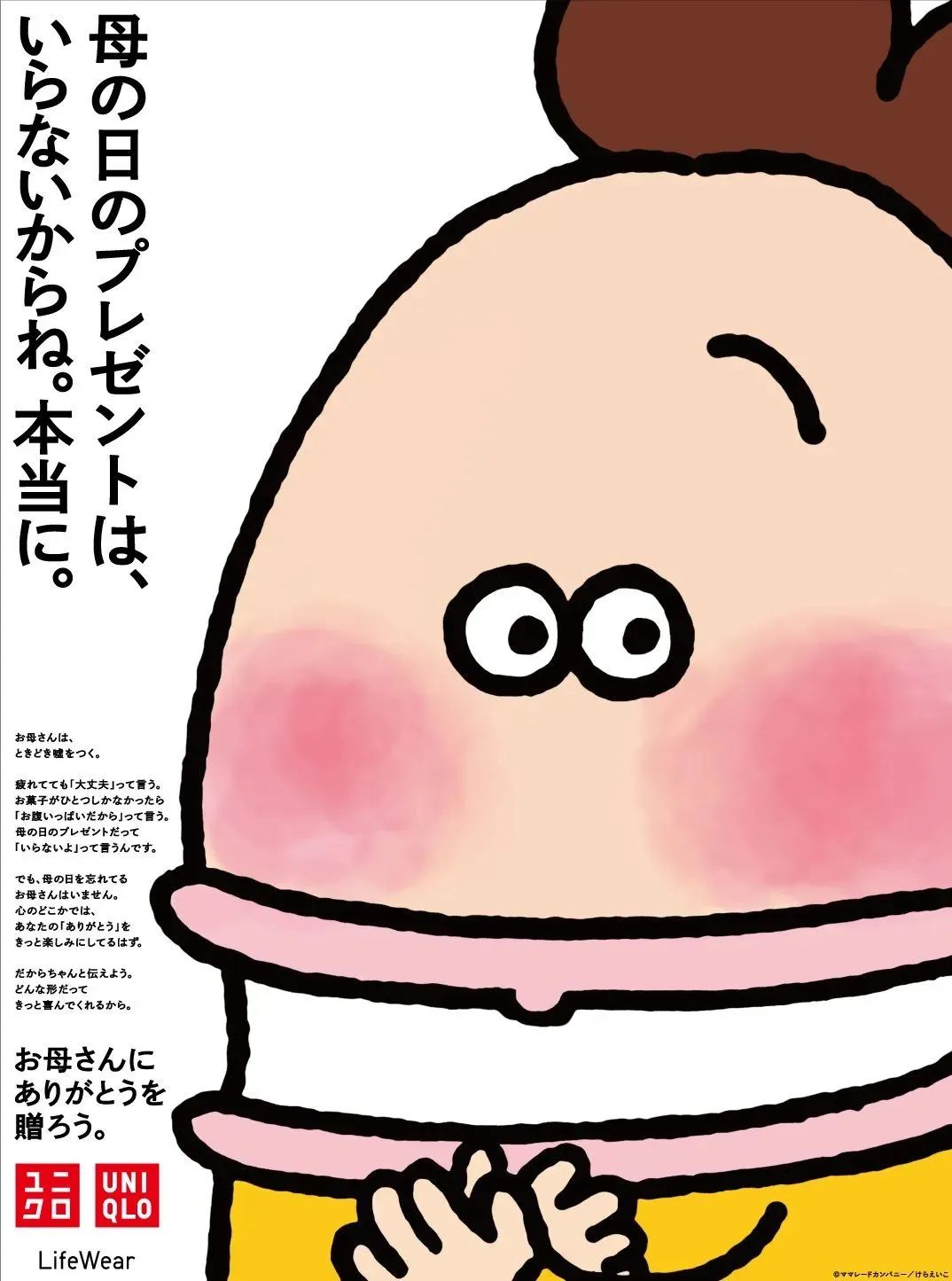 同样是在5月。优衣库UNIQLO 为庆祝母亲节的到来,在5月6日发行的日本《读卖新闻》上刊登了2022年母亲节报纸广告。