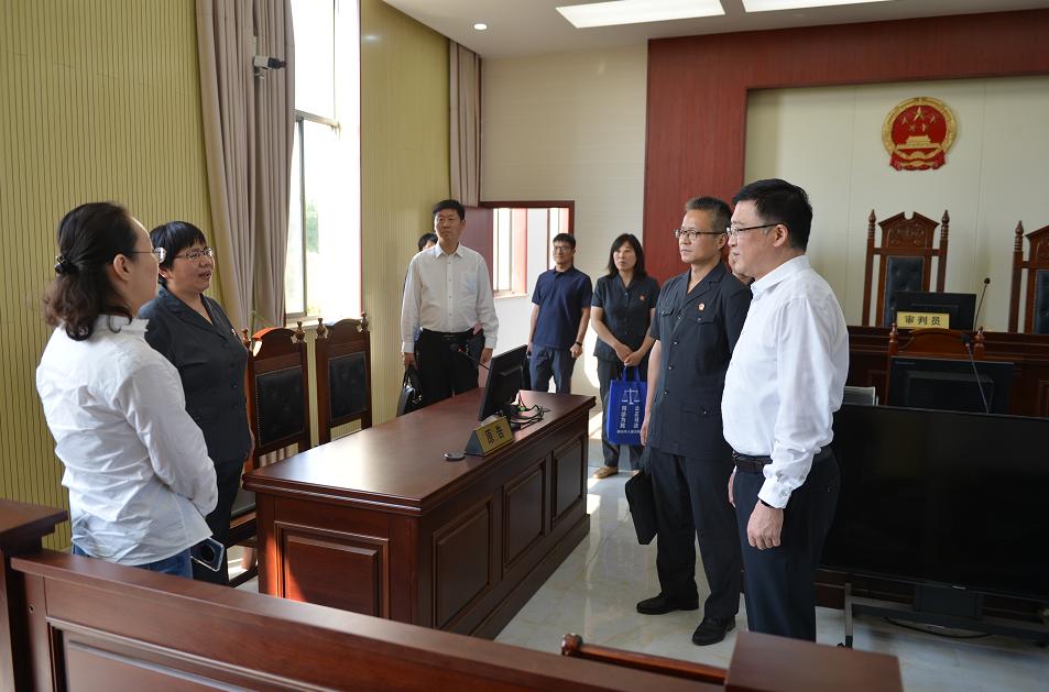 下午,许徽一行深入潘村法庭实地调研,仔细察看了科技法庭、办公环境等基础设施建设,详细询问法庭案件审理、人员配备、安全保障等工作情况,并与法庭干警亲切交谈。座谈会上,万杰汇报了明光法院今年各项重点工作开展情况、存在问题以及下一阶段工作安排。