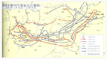 红军西进云南与巧渡金沙江要图(1935.4.8—5.9)(图片来源:人民网)