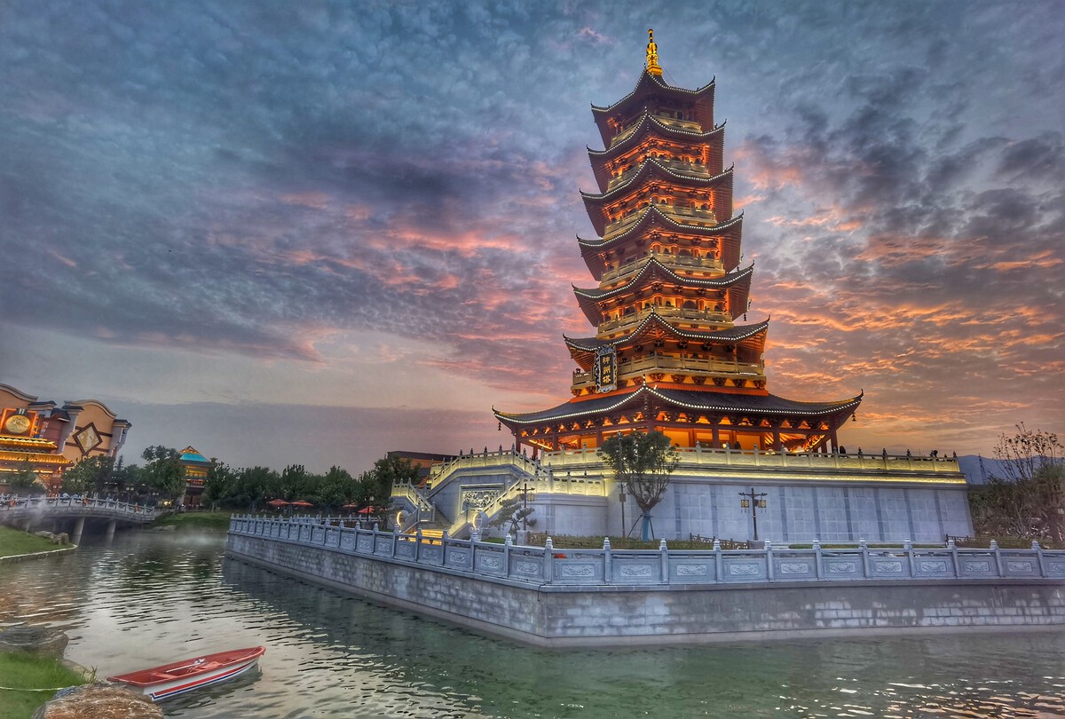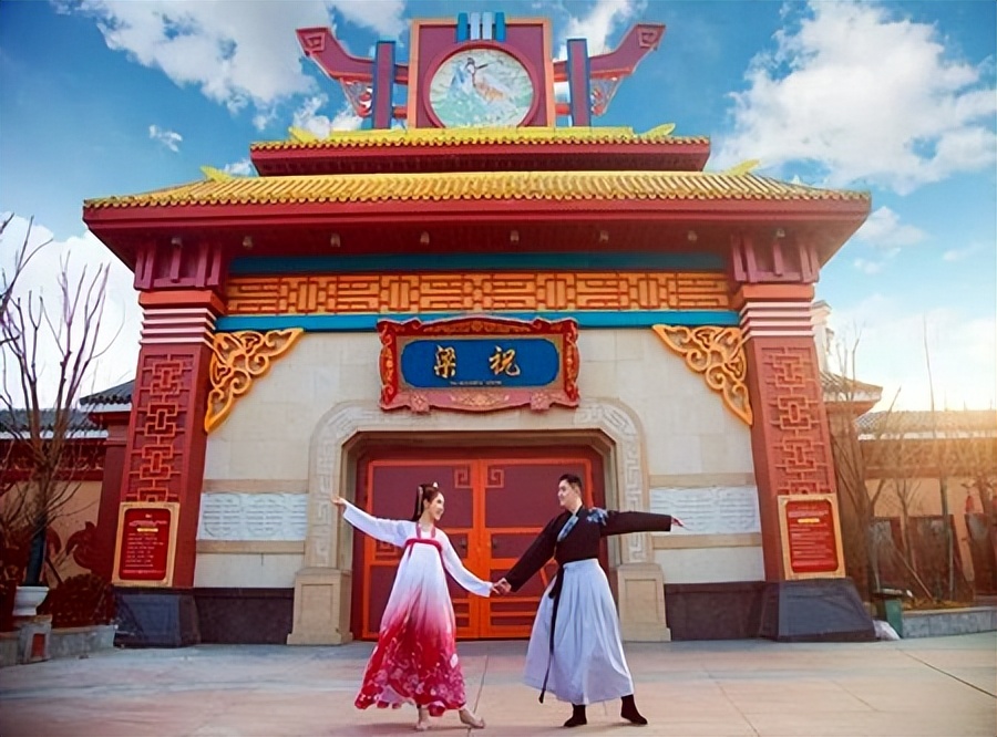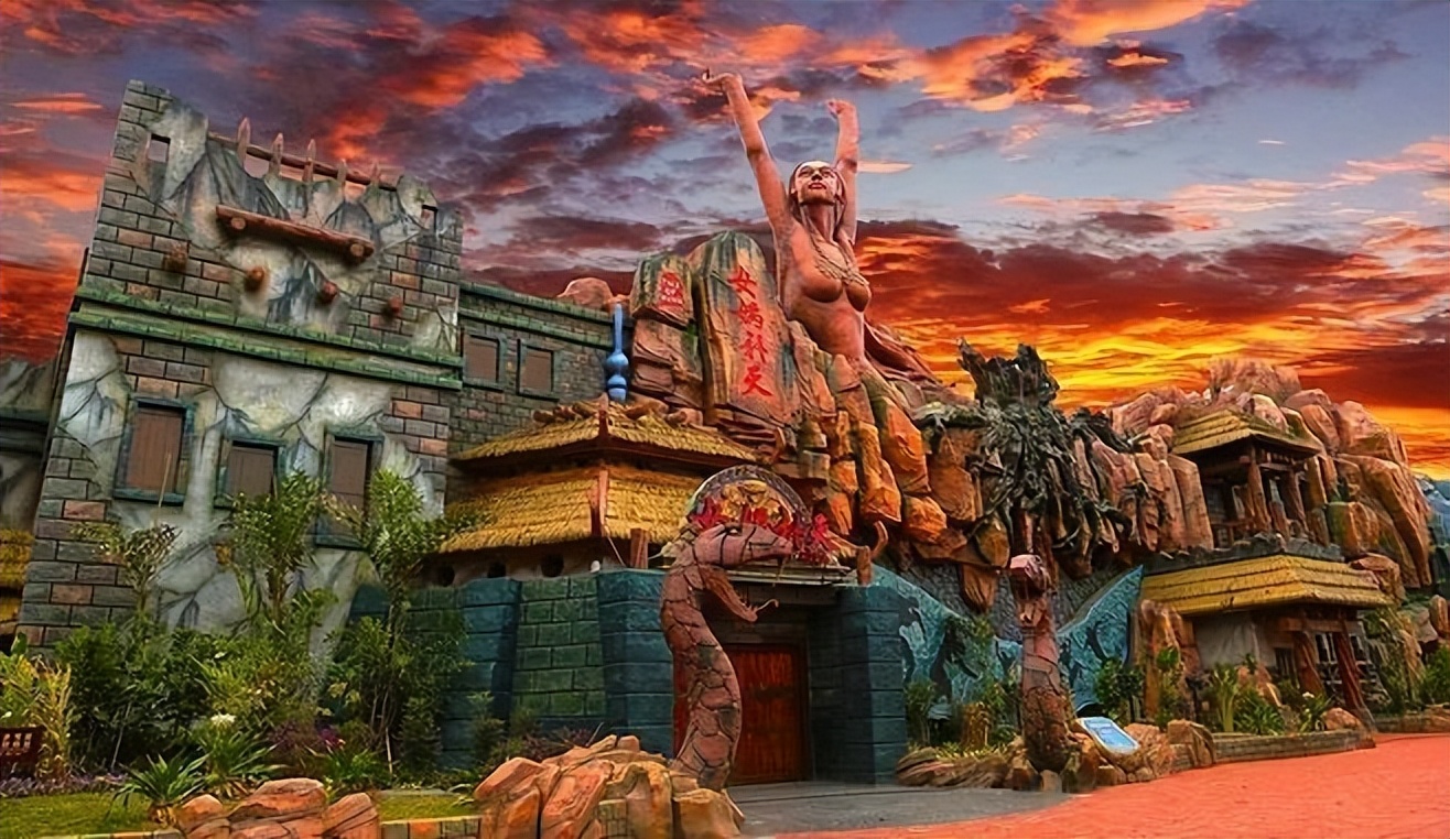 它的不同之处在于以神话历史为主题,建筑多是红墙黛瓦、飞檐斗拱的传统中式,古色古香韵味十足。
