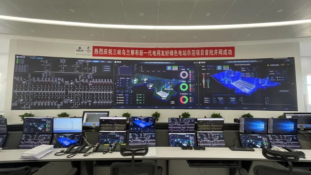 乌兰察布项目总建设规模200万千瓦,包括170万千瓦风电项目和30万千瓦光伏发电项目,配套建设55万千瓦×2小时储能系统。项目分为4个“风光储”单元,共建设1个智慧联合调度中心和4个升压储能一体化站,是国内首个储能配置规模达到千兆瓦时的新能源场站。项目建成后,年发电量将达到近64亿千瓦时。