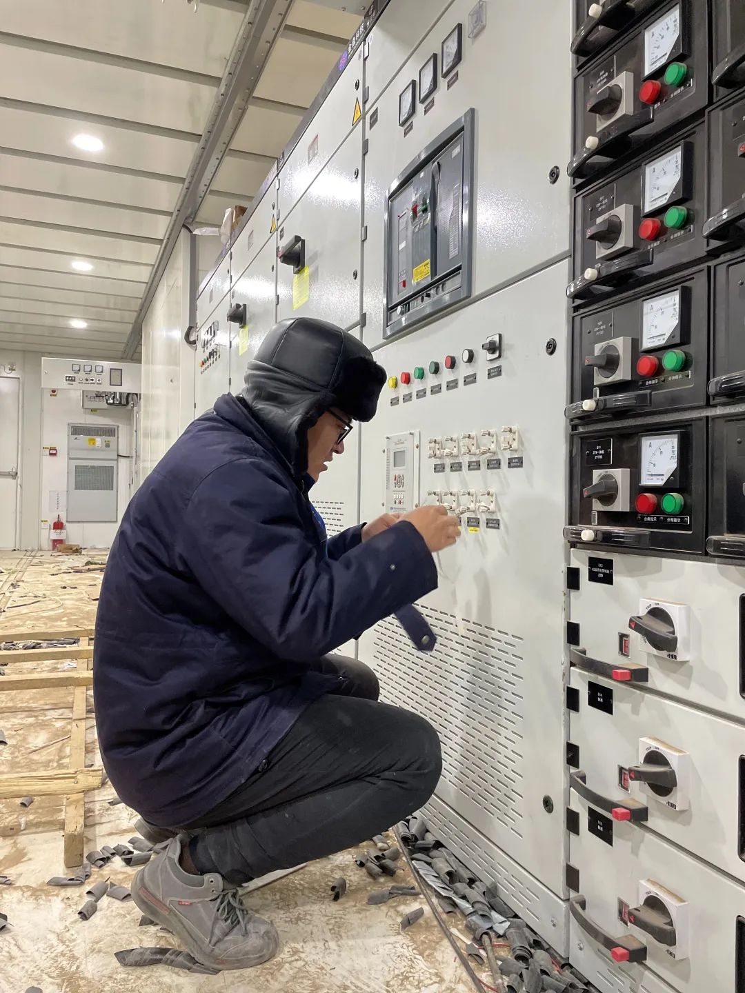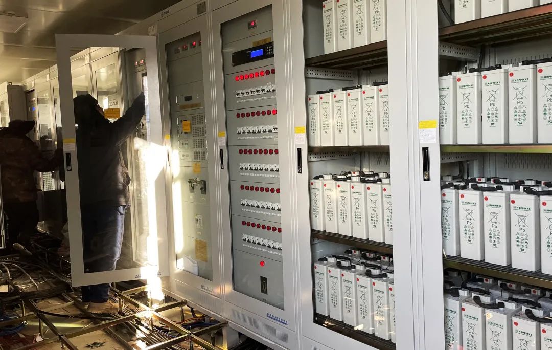 一期工程利用磷酸铁锂电池储能技术,共建设86个储能电池仓,一个仓11簇电池,每簇26个电池组,每组14个电池芯。这些电池仓可以储存电量28万千瓦时,相当于12727辆新能源汽车的储电量。“这些电池仓累计共有80万个信息点需要检测,由于调试工作的特殊性与精密性,去年冬天调试时通常需要将双手暴露在零下20摄氏度的环境中长达十几个小时,我们仅用一个多月就完成了所有调试任务。”项目调试中心负责人杨国帅回忆道。