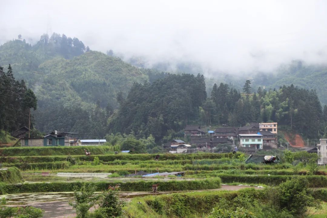 梅雨时节,走进榕江县平永镇乔亥上寨,愈发葱郁的植被环抱着村庄,几个村民在水田里忙碌着,燕子低飞,白鹭起舞,一切都浸润在雨天的水雾中。