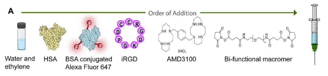 在这项新研究中,研究团队开发了具有生物相容性的纳米颗粒,它包含聚合人血清白蛋白(HSA) 和低聚乙二醇(OEG),由于涂有肿瘤穿膜肽 iRGD,使其可以在全身递送后靶向 GBM 中的 CXCL2/CXCR4 通路。
