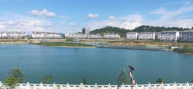 这是一个风景如画的易地移民搬迁安置点:一幢幢崭新的民居坐落在雪花湖畔。微风拂过,处处都是绿意点点。游客们来到这里,可以环湖散步健身、骑行。民族文化