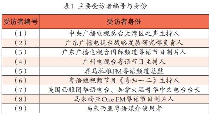 以上三个层面共同构建了粤语国际传播人才培养的重要意义。为了进一步探索粤语国际传播人才培养的关键要素,笔者于2021年10—11月对9位粤语国际传播创作者、传播者和信息接收者进行了深度访谈(见表1),尝试从新全球化、融合发展和国家需求三个层面出发,分析在专业培养期间影响毕业生专业竞争力与发展潜力的关键指标,从而更好地构建粤语国际传播人才培养的目标体系和行动逻辑。