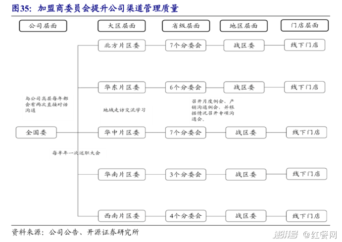 在绝味扩张的过程中,我们可以看到,其在加盟管理方面一直持续精进。不仅在加盟商筛选方面建立了完整的评价体系和方法,还制定了加盟商分级管理和激励政策。同时,公司设立了四级加盟商委员会体系,更好地实现了加盟商自我管理,提高对加盟商的管理效率。