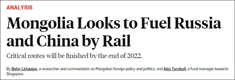 与此同时,文章提到了中俄基础设施计划。首条中俄跨境铁路预计将于8月完工,耗资3.55亿美元。俄罗斯和中国之间的能源连接,或许阐释了蒙古国煤炭能源的脆弱性,进一步证明了蒙古国参与这样一项重大发展的战略利益。