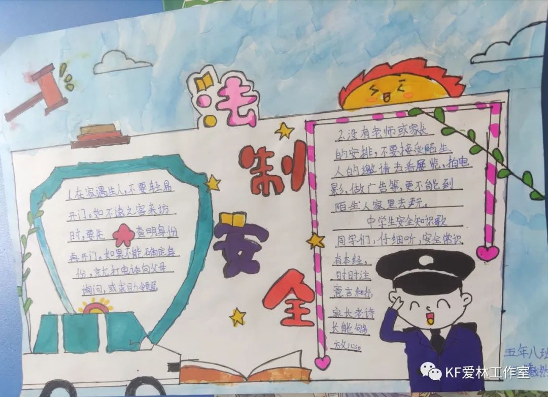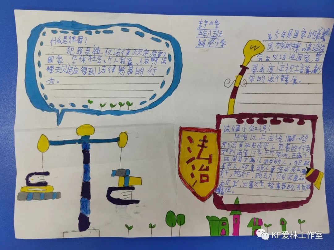 最后的法治手抄报环节,孩子们展示了他们精心制作的手抄报,有宪法、法治与预防、未成年人保护法、民法、刑法等多方面的内容,他们用他们的理解和学习制作了一幅幅精美的手抄报。