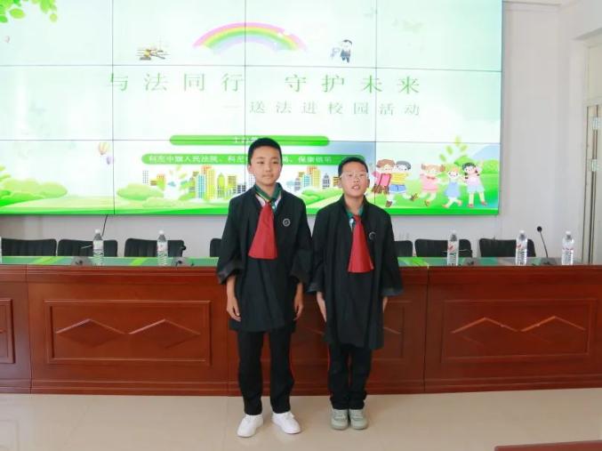 活动中,学生代表穿上了法官、检察官、律师、司法警察制服,变身“法官”、“检察官”、“律师”、“司法警察”,真实体验法院审判工作。遵纪守法·健康成长