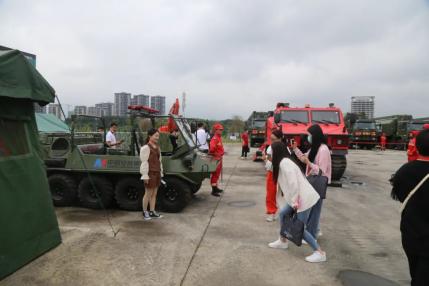 在大型救援装备静态展示区及野战营区