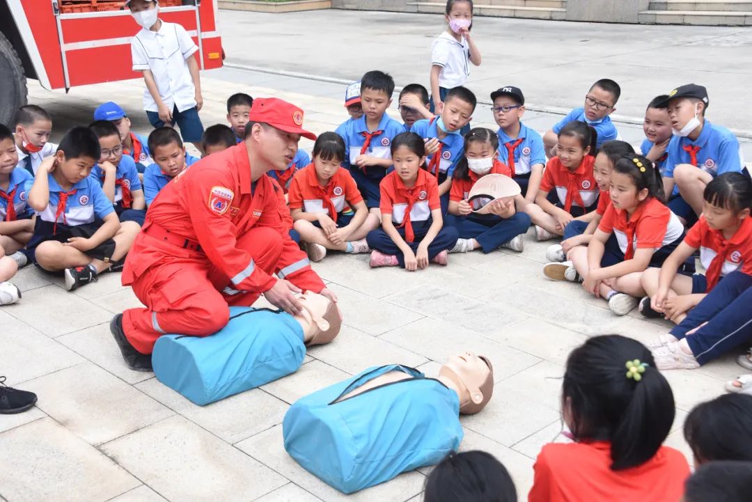 在救援队员进行自救互救演示后小朋友们纷纷提问