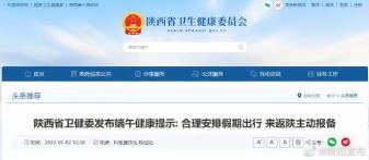华商新闻▲当前国内外疫情防控形势依然严峻复杂,“端午”假期人员流动和聚集性活动将明显增多。为有效控制和减少新冠疫情传播风险,科学精准做好疫情防控,坚决巩固拓展好来之不易的防控成果,陕西省卫生健康委温馨提示:请全省广大居民朋友端午节期间持续做好个人健康防护和监测,合理安排假期出行,确保度过一个安全健康的假期。
