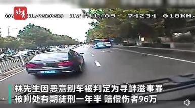 ▲近日,北京顺义法院审理了一起寻衅滋事案件。林先生驾车行驶中遇公交车出站,认为影响了自己通行,心生不满的他在车前低速行驶进行“报复”,公交车想借非机动车道超车却撞伤一路人。顺义法院一审判决公交负主要责任,公交公司赔偿伤者199万余元;林先生因恶意别车被判定为寻衅滋事罪,被判处有期徒刑一年半,赔偿伤者96万元。