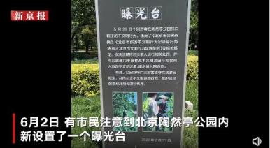 ▲6月2日,有市民注意到北京陶然亭公园内新设置了一个曝光台,曝光了5月29日一位游客抓白鸭子的行为。陶然亭公园游客管理处工作人员介绍,被抓的鸭子为家鸭,园方是通过市民提供的视频结合监控找到了这位游客的信息,并已将他列入黑名单。工作人员称,设立曝光台是想提醒游客文明游园。2日16时许,陶然亭公园通报称,已找到涉事人员李某某,公安、社区居委会等与园方已当面对其批评教育。