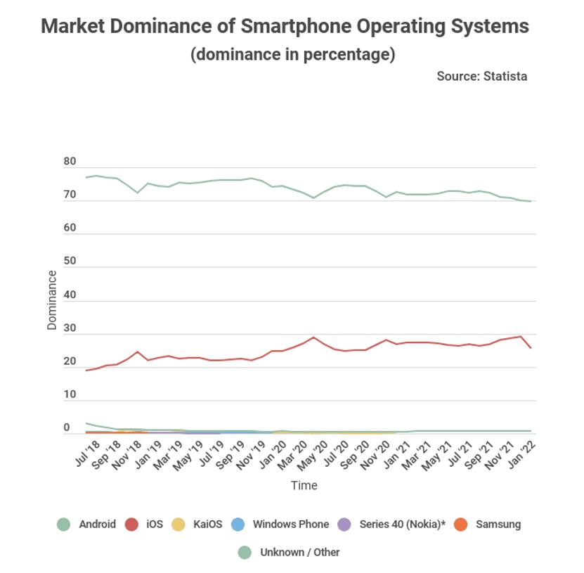 近四年来,在智能手机端,苹果iOS的市场占有率呈现波动增长趋势,最高时一度接近30%。因此每次iOS的重要更新,受关注度都较高。