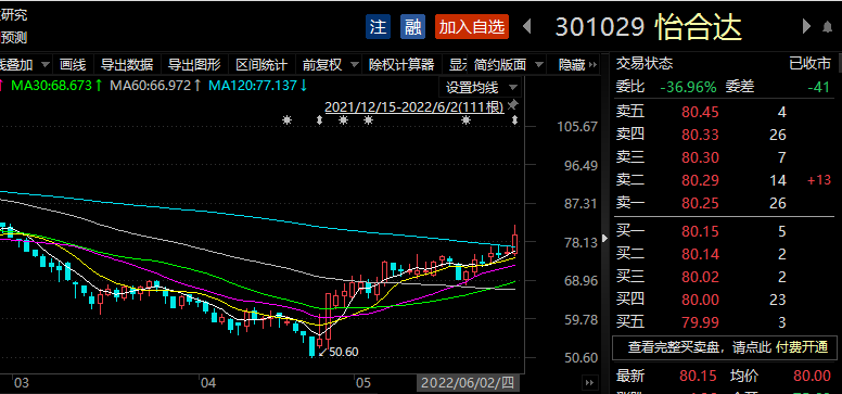6月2日,怡合达收盘价为80.15元/股,当日股价上涨5.34%,总市值320.6亿元。5月份,怡合达股价上涨13.16%。怡合达在2022年一季度末被11只基金持仓504.75万股,占流通股比例为14.02%。