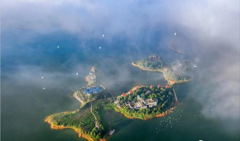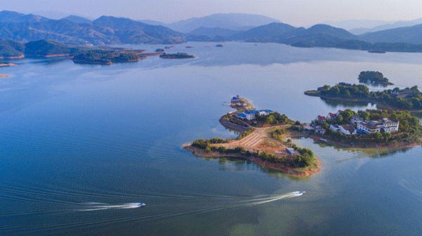 这里四周群山环抱,层峦叠嶂,四季如春湖面烟波浩渺,空气清新,水质碧澄