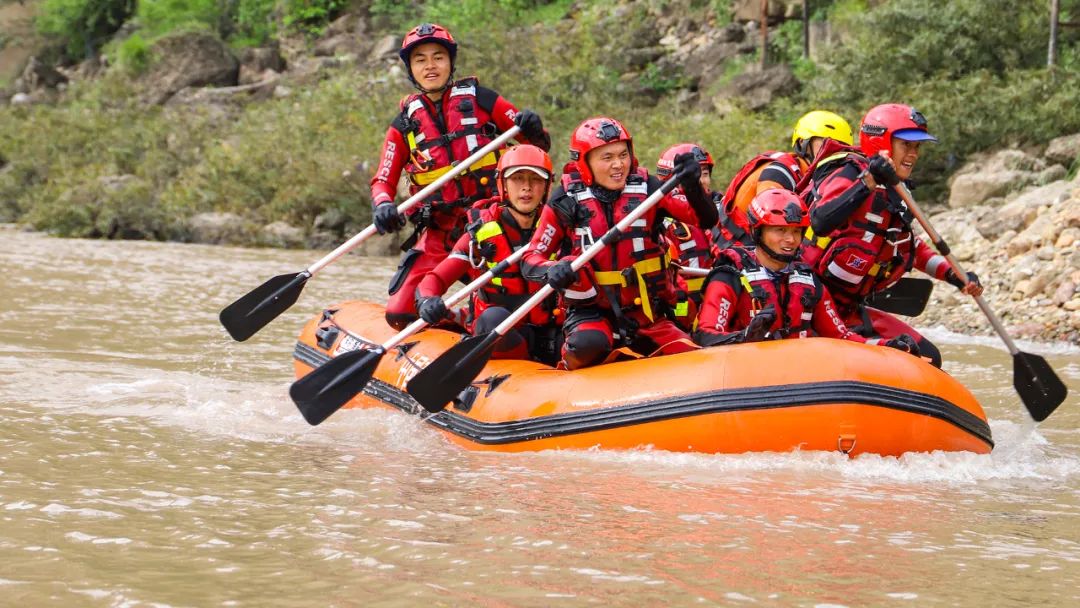 培训邀请昆明红珊瑚潜水信息公司教练员为主教官,云南森林消防总队特种救援大队和训练大队4名队员为助理教官为培训班教学授课,坚持由简到繁、先理论后实践、先示范后操作的原则,以静态水域、急流救援知识技能为主,重点对急流救援、抛投救援、翻船自救、冲锋舟操作与使用等课目进行实战实训,通过学习水域救援知识技能、水域救援技巧、操作救援装备等内容,使队员熟练掌握操作技能和技术要领,达到熟练操作、人装结合的目标,实现训练效果最大化、最优化,着力提高学员水域救援技能本领。培训坚持以“难”字为要,在急流中模拟真实救援背景,将作战训练“实战化”与应急救援“规范化”相统一,坚持在“练”字上下功夫,以近似实战场景训练队员,进一步强化指战员对水上抢险救援应急反应能力,守护人民群众安全过节。
