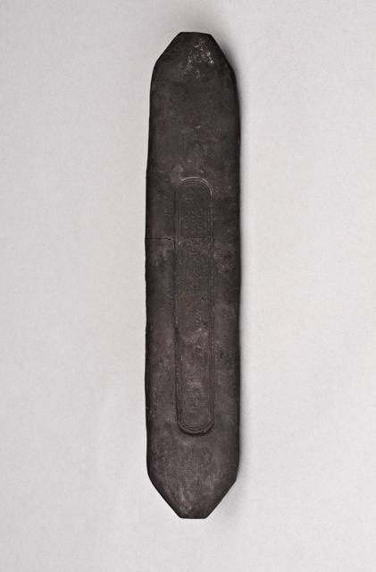 处在不同地域的文明古国都不约而同地独立发现和配制出用于书写和绘画的油墨。中国墨的历史最早可以追溯到三四千年前,学术界普遍认为,墨的历史比毛笔的历史要久远,迄今为止发现最早的墨是1975年湖北云梦秦墓出土的墨块(图4)。
