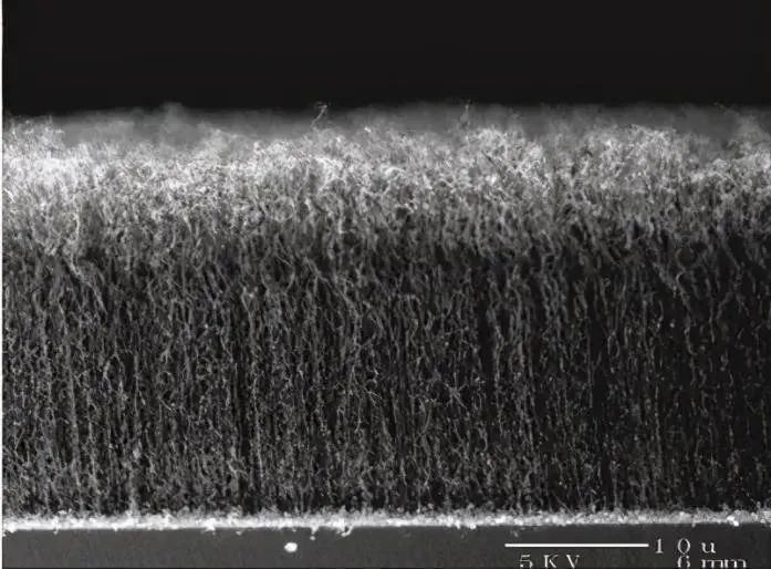 梵塔黑(Vantablack),2014年(图15),来源:wikipedia2019年9月,麻省理工学院的科学家发现了一种“超黑”材料,为了让碳纳米管在铝表面生长,研究团队把铝箔浸泡在盐溶液中,除去了表面的氧化层。这时产生的新材料的电学和热学性能都有显著提高。进一步测量发现,该材料从各个角度吸收了超过99.995%的光,成为有史以来最黑的材料,比目前已知的最黑物质“梵塔黑”要黑10倍。