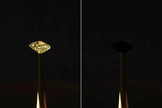 这项研究发表于《美国化学学会-应用材料与界面》杂志,并作为艺术装置在纽约证券交易所展出,名为“ 虚荣救赎”(图16),科学家在一颗16.78克拉的天然黄色钻石上涂上这种新材料。令人眼花缭乱的宝石在使用涂层后成为了一种扁平的黑色物体。