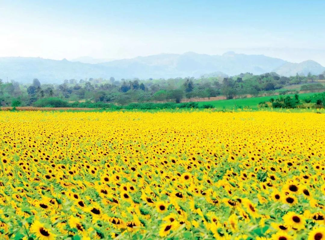 西班牙北部纳瓦拉地区的向日葵种植园内,金灿灿的“太阳花”昂首绽放。1510 年,向日葵种子从美洲被带到了欧洲,最早种植在西班牙马德里的植物园内作观赏用,欧洲人惊于它向阳而生的特质,称赞其是“上帝创造的神花”新旧大陆间的“交换生”