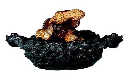 玉髓雕刻,清,高2.9 厘米。用宝石雕制成的花生造型逼真,在中国古代艺术品中带有吉祥寓意与东方大地“相见恨晚”