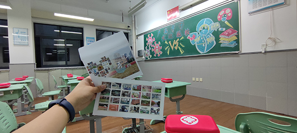 除了黑板上写着的一句句暖心又励志的标语,课桌上还摆放着学校精心准备的防疫包,里面装有口罩、酒精喷雾、免洗洗手液等常规防疫物品。防疫包还藏着满满的细节,将对过往三个月的纪念和对未来的祝福,全部都装进去。