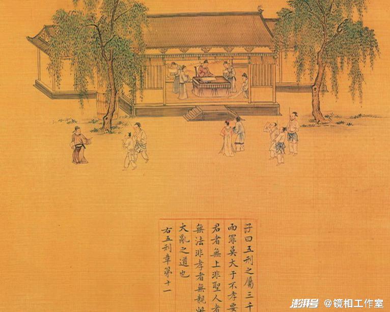 当然最具直观效果的证据还是宋代的图像材料。我们能不能找出一张宋人描绘诉讼场景的图像作品呢?我确实找到了——宋代多位画师都画过《孝经图卷》,而《孝经》中的“五刑章”恰好涉及司法诉讼的内容,因此宋人笔下的《孝经图卷》也画出了法官审讯的场面。