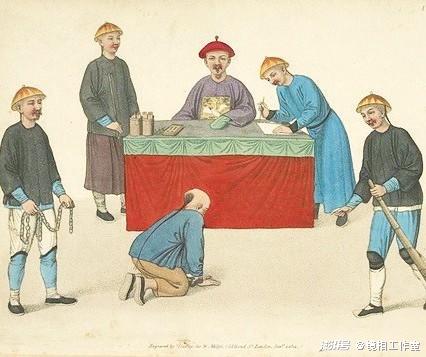 清代的平民如果上衙门打官司,也是必须下跪叩头的——只 有那些取得功名的缙绅,才获得免跪于公堂的特权。1801 年,即嘉庆六年,英国人乔治·亨利·梅森少校(George Henry Mason) 在伦敦编印了一本《中国刑罚》(The Punishments of China)画册,