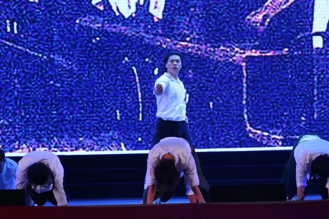表演单位:机电学院一位老兵想起了当年在战斗中牺牲的战友们,心中悲痛万分。他以身体为锤,重重敲击在大地上,恍惚间,看到了战友们的忠魂再次苏醒,重返沙场浴血奋战,战友的忠魂昭示着誓死卫国的坚定决心,老兵情绪高涨,振作奋发。