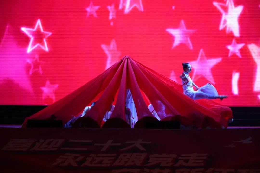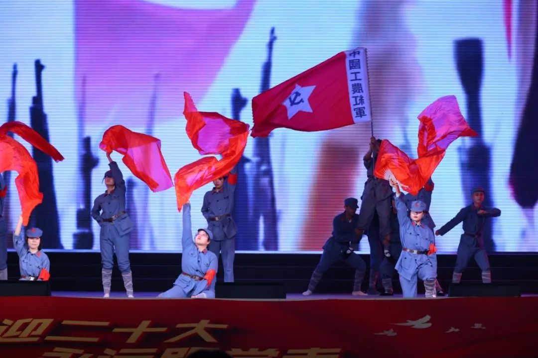表演单位:信工学院红,是党的指引,是心中的信念,是中华民族的薪火,是鲜艳炙热的中国红。在大幅红色绸布下的舞蹈,象征着我们始终跟随党的脚步,坚定且热烈。高潮部分聚集成一颗树,将那一抹红拥护、高举、传递、蔓延。这簇薪火必将代代相传、生生不息。