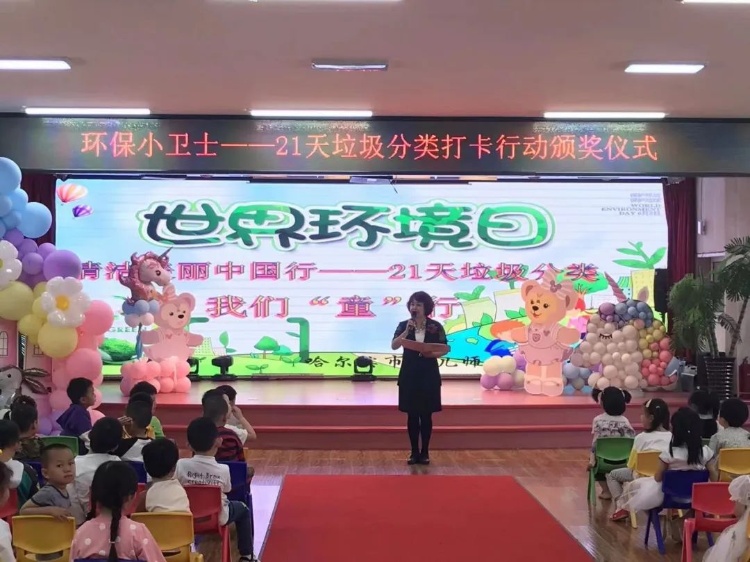 为纪念“六.五”世界环境日,黑龙江省环境保护志愿者联合会与哈尔滨幼儿师范高等专科学校、哈尔滨市幼儿师范附属幼儿园共同举办纪念“ 六.五”世界环境日——“环保小卫士21天打卡”活动颁奖仪式,联合会领导现场连线发表寄语。