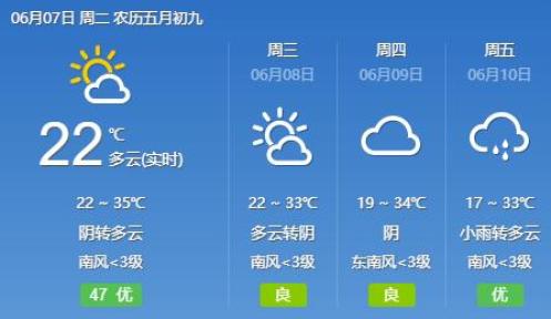 ▲6月6日西安气象台发布“高考”及“三夏”天气预报:未来三天西安市以多云天气为主,气温较高,最高气温可达34~36℃。其中8日午后南部山区、9日白天有分散性阵雨。