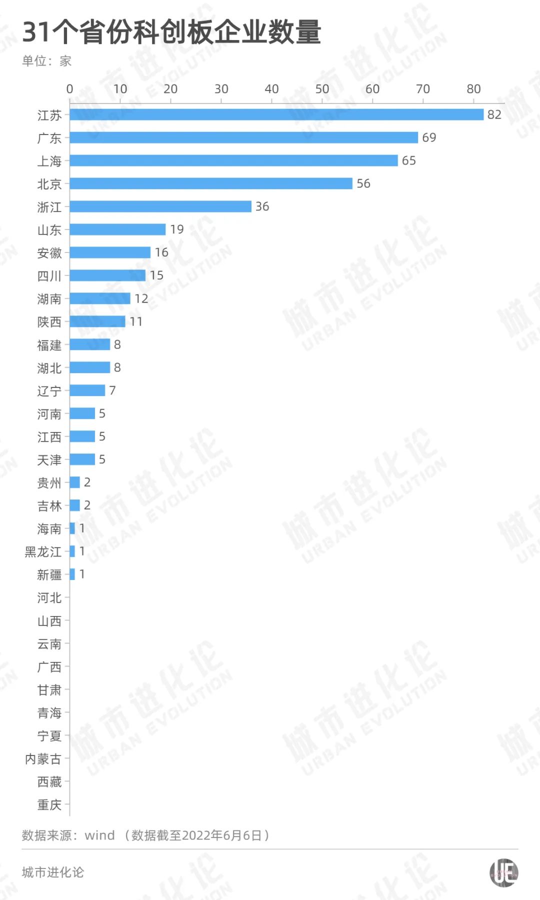 从31个省份来看,包括重庆在内,目前还有10个省份的科创板企业数量为0。