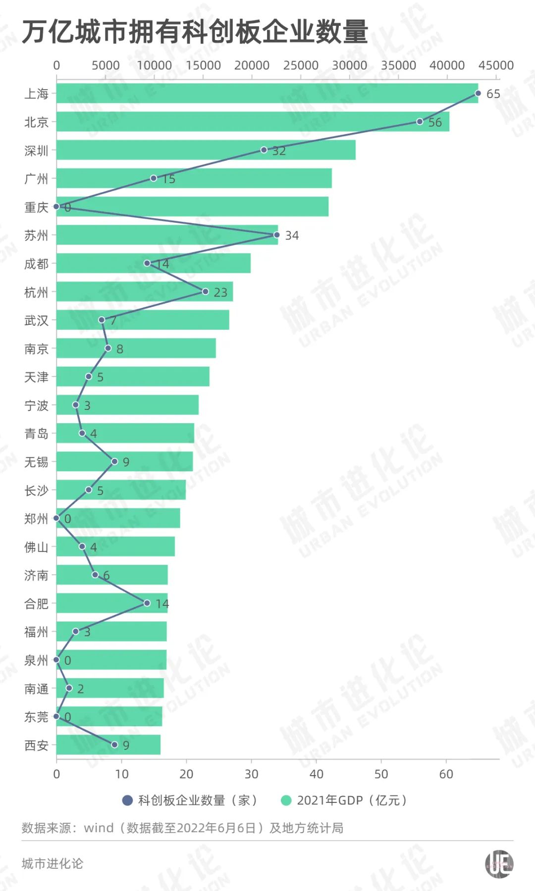 从24个万亿GDP城市来看,除了重庆,郑州、东莞、泉州的科创板企业数量也为0。