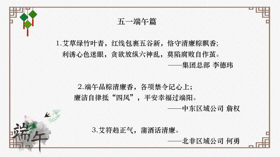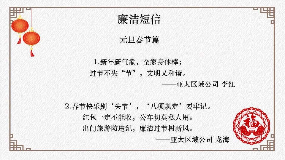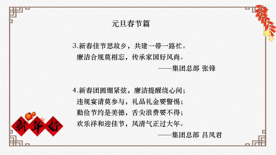各单位结合集团企业文化建设,突出节日特色和企业特点,广泛开展了原创廉洁短信和文化标语征集活动,广大职工积极参与;按照主题突出、文字精炼、寓意明晰等要求,经严格评选,从近200条所提供作品中精选出部分原创优秀作品,达到了以赛促廉的宣教效果。
