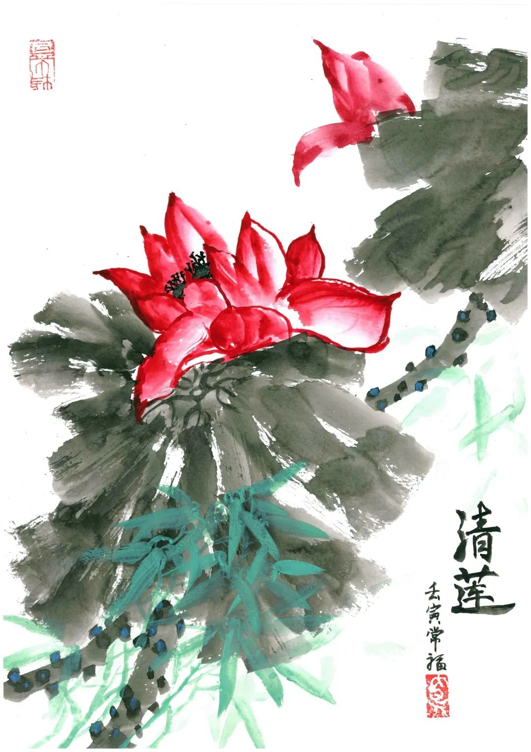 《莲花》玉立亭亭不染尘,菱花做伴蒲为邻。