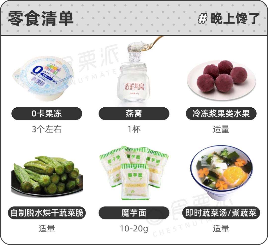 那么,建议摄入能够提高饱腹感并能控制热量摄入,又不至于给肠胃增加过多负担,同时还能满足一些咀嚼感的食物,毕竟过一会儿就要进入梦乡了,消化系统也需要睡个好觉啊。