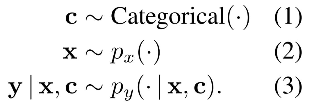 规则。为了正确理解模块化系统并分析它们的优缺点,研究者考虑采用的综合设置允许对不同的任务要求进行细粒度的控制。尤其是必须在如下公式 1-3 中展示的数据生成分布上学习操作,他们称之为规则。