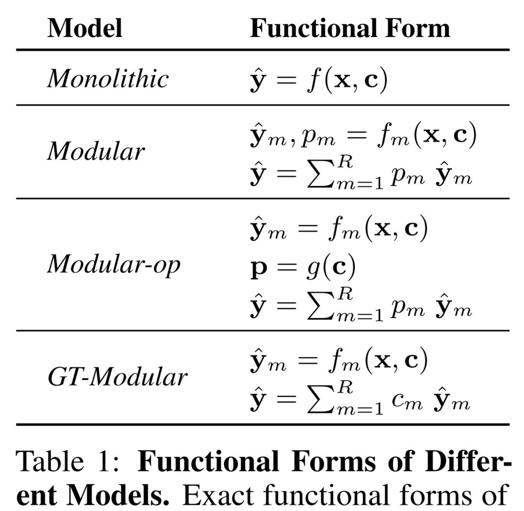 因此,研究者考虑了四类允许不同程度专业化的模型,它们分别是 Monolithic(单体)、Modular(模块化)、Modular-op 和 GT-Modular。下表 1 展示了这些模型。